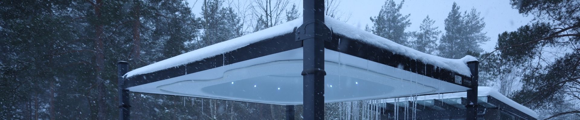 Oasis: Kestävä alumiinirakenne, harjakatto sekä integroidut LED-valot tekevät Oasis-mallista laadukkaan ja kestävän ratkaisun vaativiin talviolosuhteisiin. Lisävarusteena saatavat sivuverhot viimeistelevät tämän tyylikkään Spa-kokonaisuuden kotipihallasi.