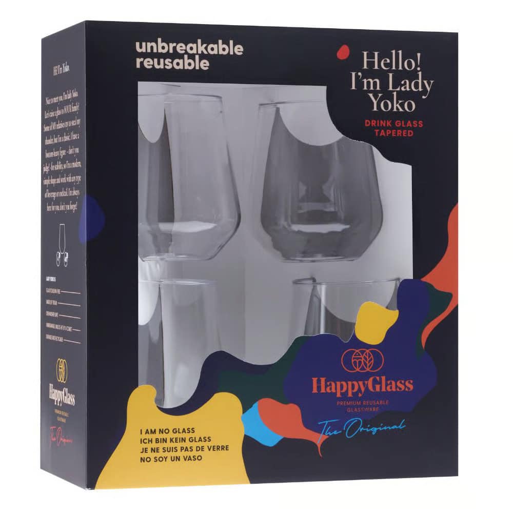 Lady Yoko pakkaus sisältää 4 kpl muovilaseja.