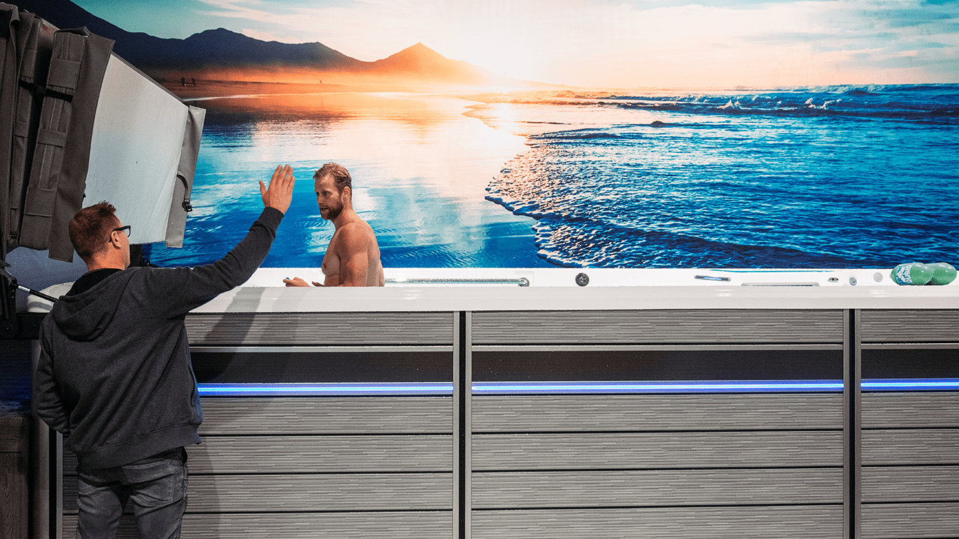 Maajoukkuetason uimari Ossi Oksa kävi Vantaan Petikon myymälässämme kokeilemassa Endless Pools -vastavirta-allasta.